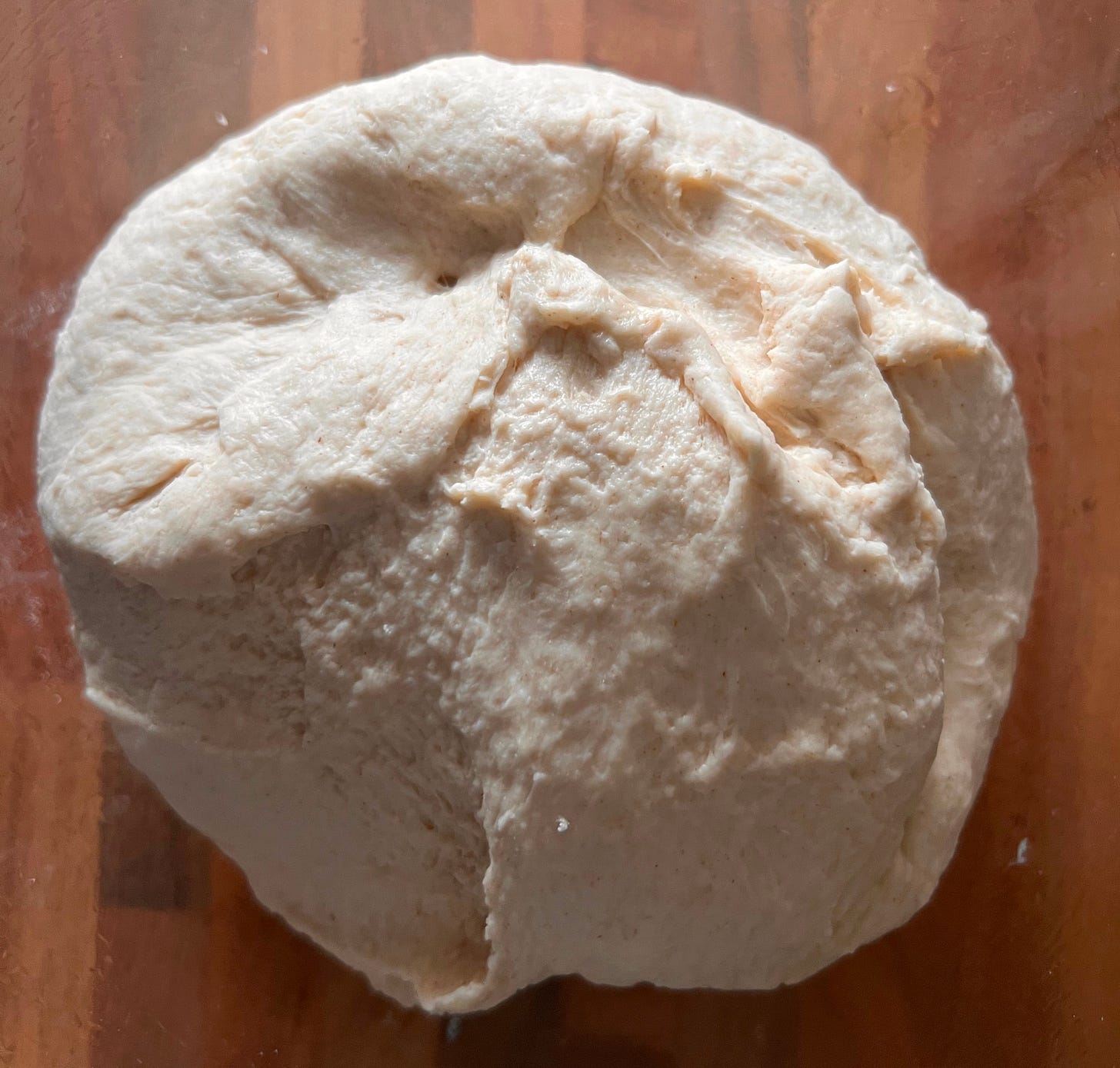 When the dough stops sticking to your hands and worksurface, it’s ready.