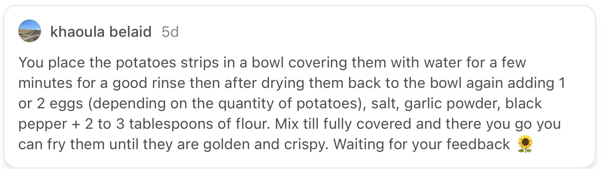 , who shared a recipe for battered chips. I haven’t had a chance to try these yet, but they sound delicious!I really enjoy getting these personal stories and feedback from everyone. If you have a story to tell - because let’s face it, we all do - leave a comment on this post with your favourite recipe, food, story, or anything really, and I’ll make sure to feature you next week.